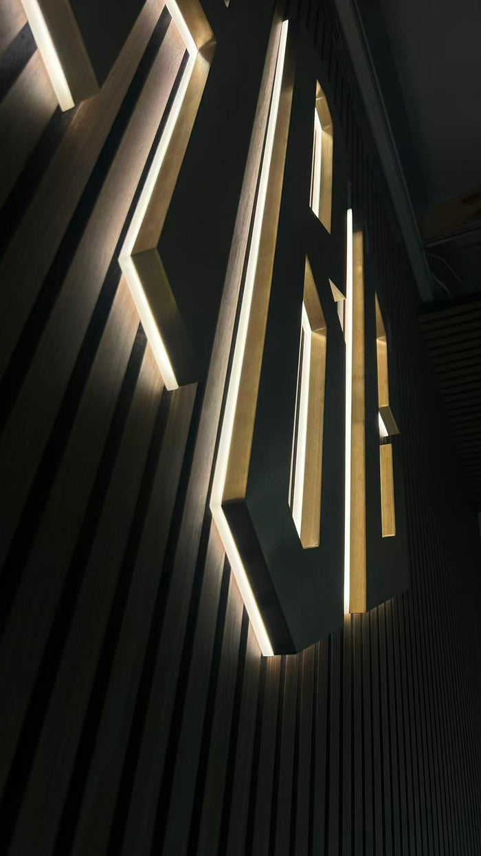 This illuminated feature wall is designed for the reception area, creating a striking focal point that enhances the office’s professional aesthetic.